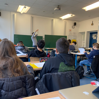 La lezione di oggi interessa l’abilitá del parlato, della scrittura e la funzione linguistica “ Fare acquisti”. L’insegnante fa domande in lingua sul loro abbigliamento, poi consegna un foglio e assegna l’attivitá da svolgere a coppie. Gli alunni dovranno scrivere un dialogo con le informazioni scritte sul foglio: si tratta di un dialogo tra cliente e commesso. Gli alunni educatamente e a voce bassa si aiutano tra loro e l’insegnante passa tra i banchi per controllare il lavoro. Alle 8:20, venticinque minuti prima della fine della lezione, l’insegnante chiama alcune coppie di alunni alla cattedra e fa leggere i dialoghi e, poi fa domande alla classe sul dialogo dei compagni, sulle espressioni idiomatiche e funzioni linguistiche. Gli alunni hanno un’ ottima pronuncia anche se frequentano la prima classe della scuola secondaria. Nella prossima lezione avranno il test sul present simple, quindi l’ insegnante prima di andare via, fa una breve revisione della struttura. Vengono somministrati sei test l’anno e ogni test valuta le abilitá di listening, grammar, writing e reading. Alle 8:50 mi dirigo insieme a Mehmet verso l’aula rossa R006 per la lezione di tedesco L2, seconda lingua. Vi sono due alunne provenienti dalla Turchia e Macedonia del Nord. Le loro famiglie si sono trasferite in Germania quest’anno, nel mese di novembre. Mehmet mi spiega che ci sono quattro insegnanti di lingue che svolgono lezioni di alfabetizzazione per tre ore alla settimana. Nelle altre ore gli alunni seguono le materie curricolari. Mehmet insegna Tedesco per 3 ore alla settimana, Inglese per 15 ore e Matematica per 5 ore. Mi mostra la cartelletta dei lavori dei ragazzi e poi controlla i compiti eseguiti dalle ragazze straniere. Alle 9:55 raggiungo Verena nell’aula blu, raum B119 classe 8. Non appena entro nella classe, gli alunni mi salutano calorosamente perché avevo giá partecipato alla loro lezione. Oggi ci sará una prova nazionale che li vedrá impegnati per 90 minuti, simile alla nostra prova INVALSI. Verena mi informa che quest’anno non é obbligatoria ma gli insegnanti hanno deciso di somministrarla nella classe 8. Le prove nazionali di tedesco,matematica, inglese si somministrano nella classe 3 e nella classe 8. La prova d’inglese valuta le tre abilitá: reading, writing e listening. Viene consegnato a ciascun alunno un fascicolo di 21 pagine suddiviso in 2 sezioni secondo il livello A1 e A2.