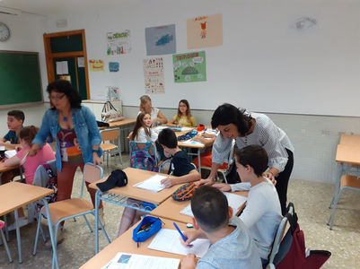 La giornata del 10 ottobre è ricca di iniziative interessanti e utili dal punto di vista formativo. Assisto alla lezione CLIL in valenciano tenuta dalla prof. ssa Isabel García. Il progetto è rivolto a quindici ragazzi del primo anno della scuola secondaria ESO e prevede la redazione di una lettera formale all'interno della quale i ragazzi raccontano un viaggio verso un pianeta sconosciuto. I ragazzi lavorano in gruppo e dispongono dei libri della biblioteca, dei computer per potere consultare materiale didattico e di una guida completa, fornita dalla loro insegnante, per strutturare meglio il lavoro. All'interno della lettera gli studenti devono inserire quattro errori concettuali riguardanti gli argomenti studiati; ultimato il lavoro, ogni gruppo dovrà esporre ai compagni ciò che ha elaborato e a loro volta i compagni dovranno individuare gli errori e valutare il prodotto. Verranno valutati l’originalità, i contenuti, la capacità di lettura e l’originalità degli errori. Vincerà la gara la squadra che avrà individuato il maggior numero di errori e avrà ottenuto la migliore valutazione.